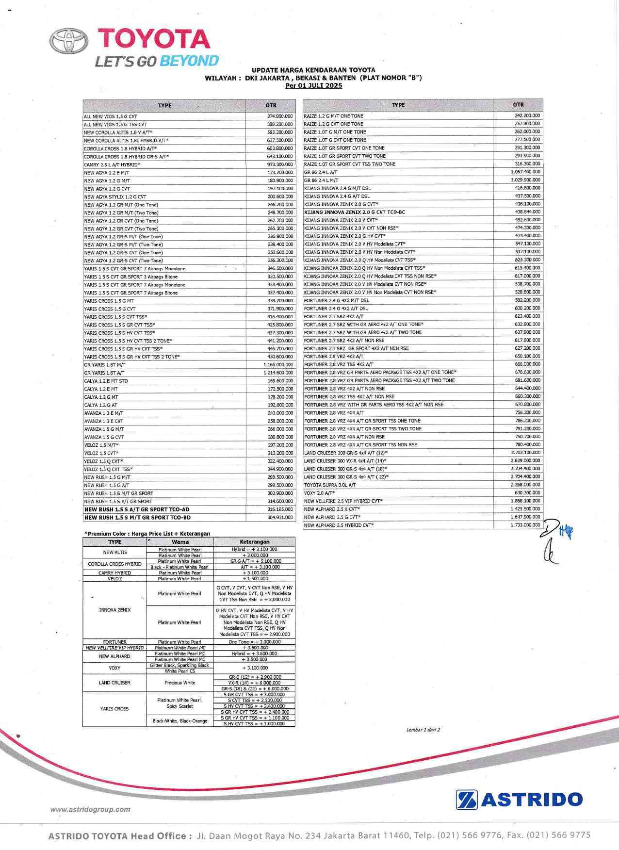 Harga Yaris adalah antara Rp 295,8 Juta hingga Rp 325,1 Juta.